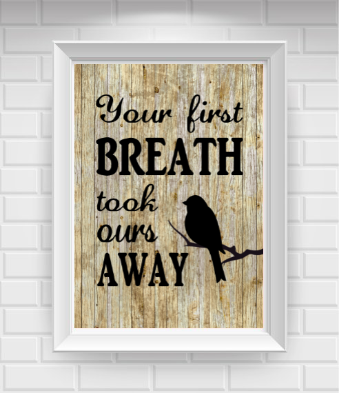 8"x10" Your First Breath Took Ours Away / Bird on Branch Nursery Poster Print / Wall Art