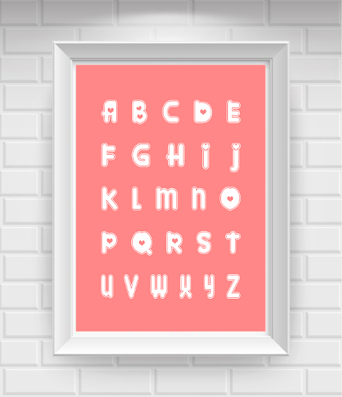 11"x14" Alphabet with Hearts Nursery Poster Print / Wall Art