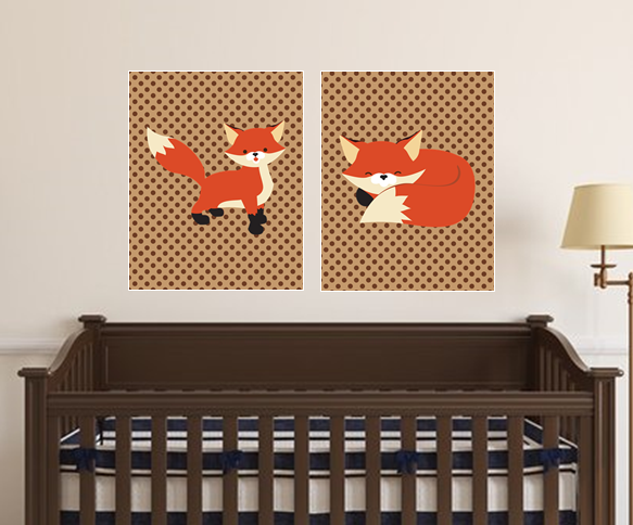 Set of two 11"x14" Fox with Polka Dots Poster Prints / Wall Art