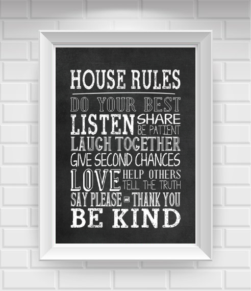 8"x10" Chalkboard-Style Family Rules Poster Print / Wall Art
