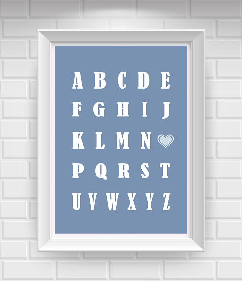 11"x14" Alphabet with Hearts Nursery Poster Print / Wall Art