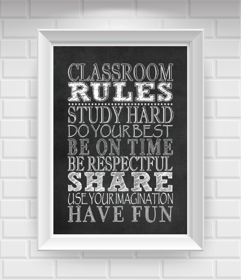 11"x14" Chalkboard-Style Classroom Rules Teacher Poster Print / Wall Art